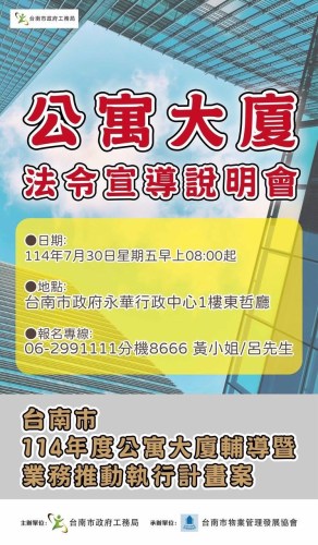 地點:台南市政府永華行政中心1樓東哲廳辦理台南市物業管理發展協會承辦臺南巿政府工務局